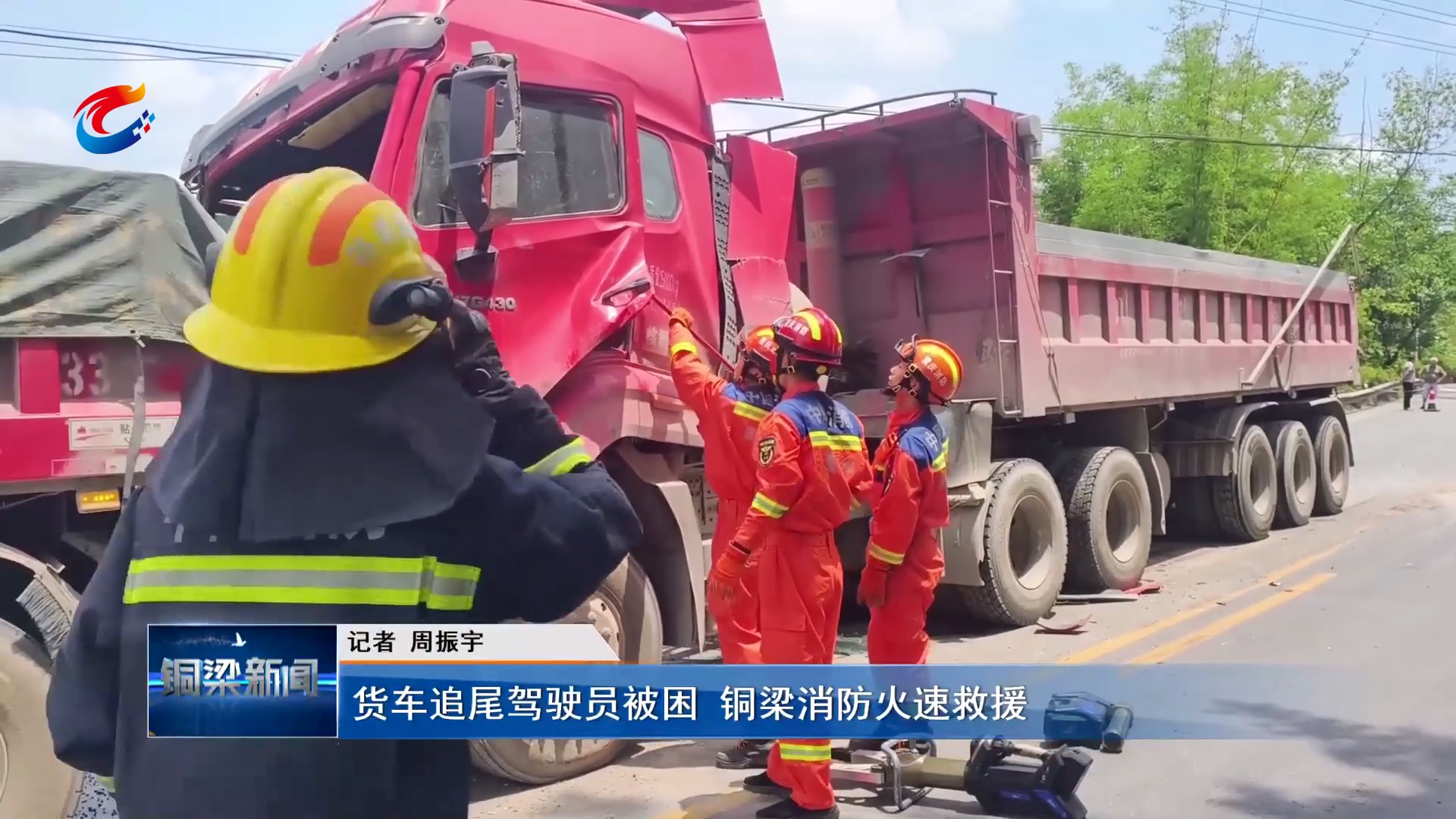 货车追尾驾驶员被困 铜梁消防火速救援